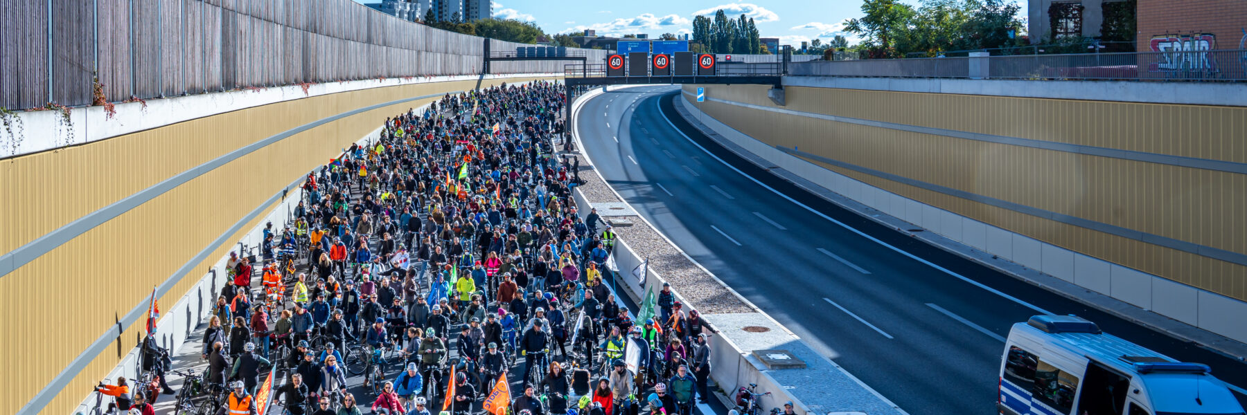 Rückblick auf die A100 wegbassen Fuß- und Raddemo